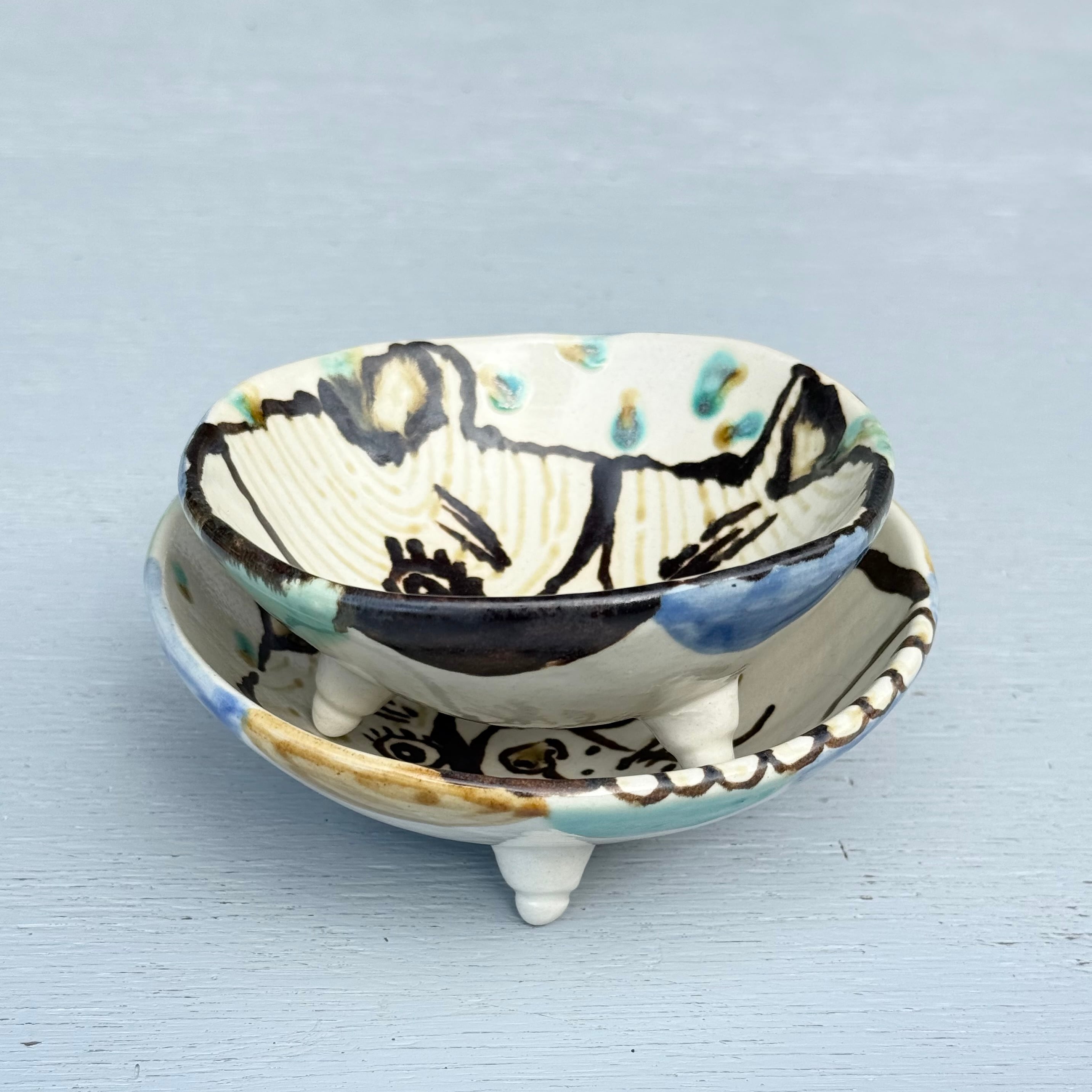 ✿三つ足小鉢(猫の梅子・ ペアセット)